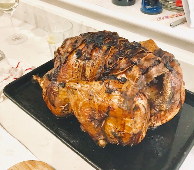 And the turkey? It was delicious. A highly recommended way of keeping your bird moist. Upside down roasting. Not sure you’ll find it in any of Jamie Oliver’s or Gordon Ramsey’s turkey recipes, but my mum? She’d have laughed and told me I’d done a marvellous job.